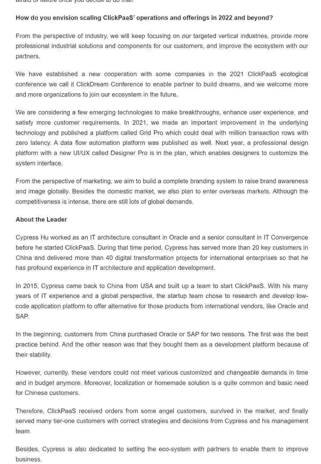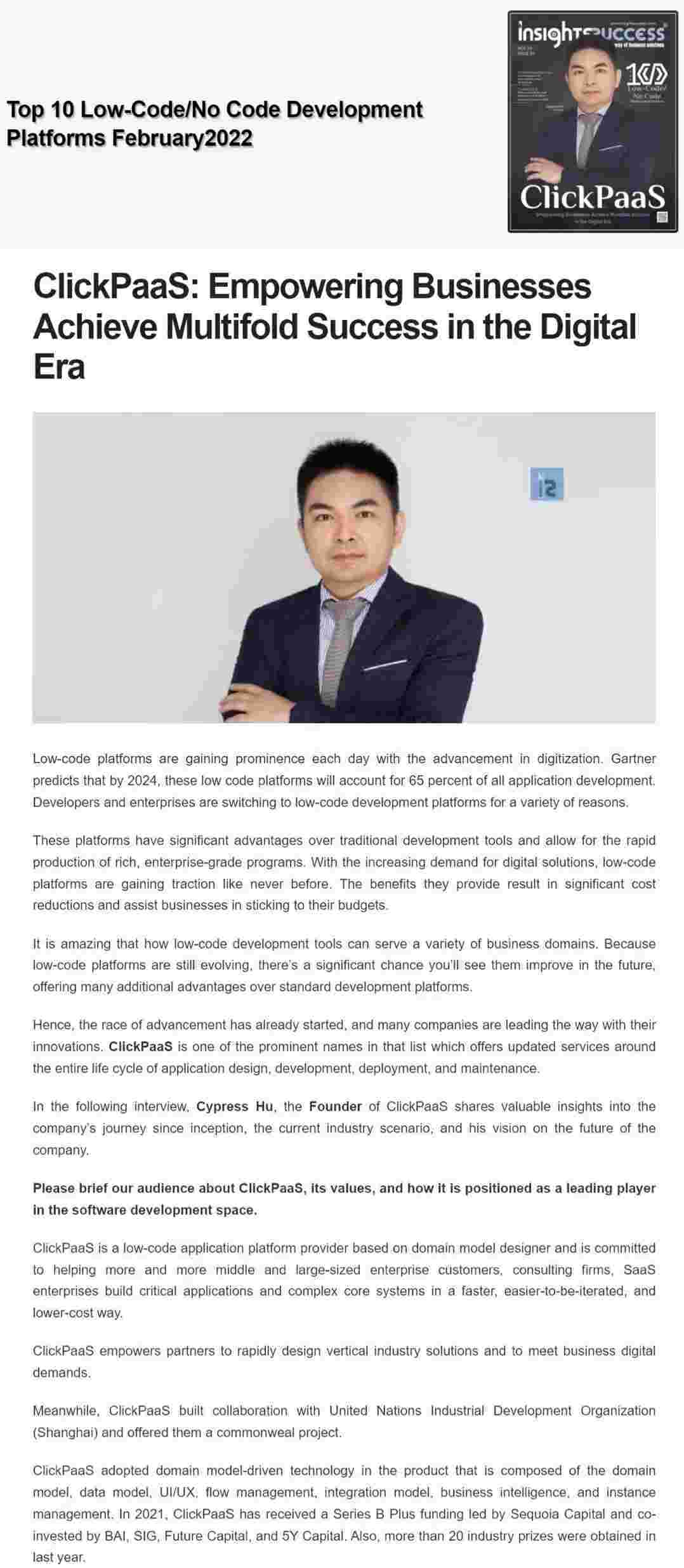 2022年年初,,,,,,,,NO钱包入选外媒Insights Success低代码/无代码开发平台 Top10,,,,,,,,,,创始人、、、、、、、、、、、、CEO胡柏受邀接受专访并荣登封面人物,,,,,,,,,,,,他与Insights Success的读者分享了NO钱包成立的初心、、、、、、、、、、、、发展历程、、、、、、、当前的行业发展趋势以及他对公司未来的展望。。。。。。。。。