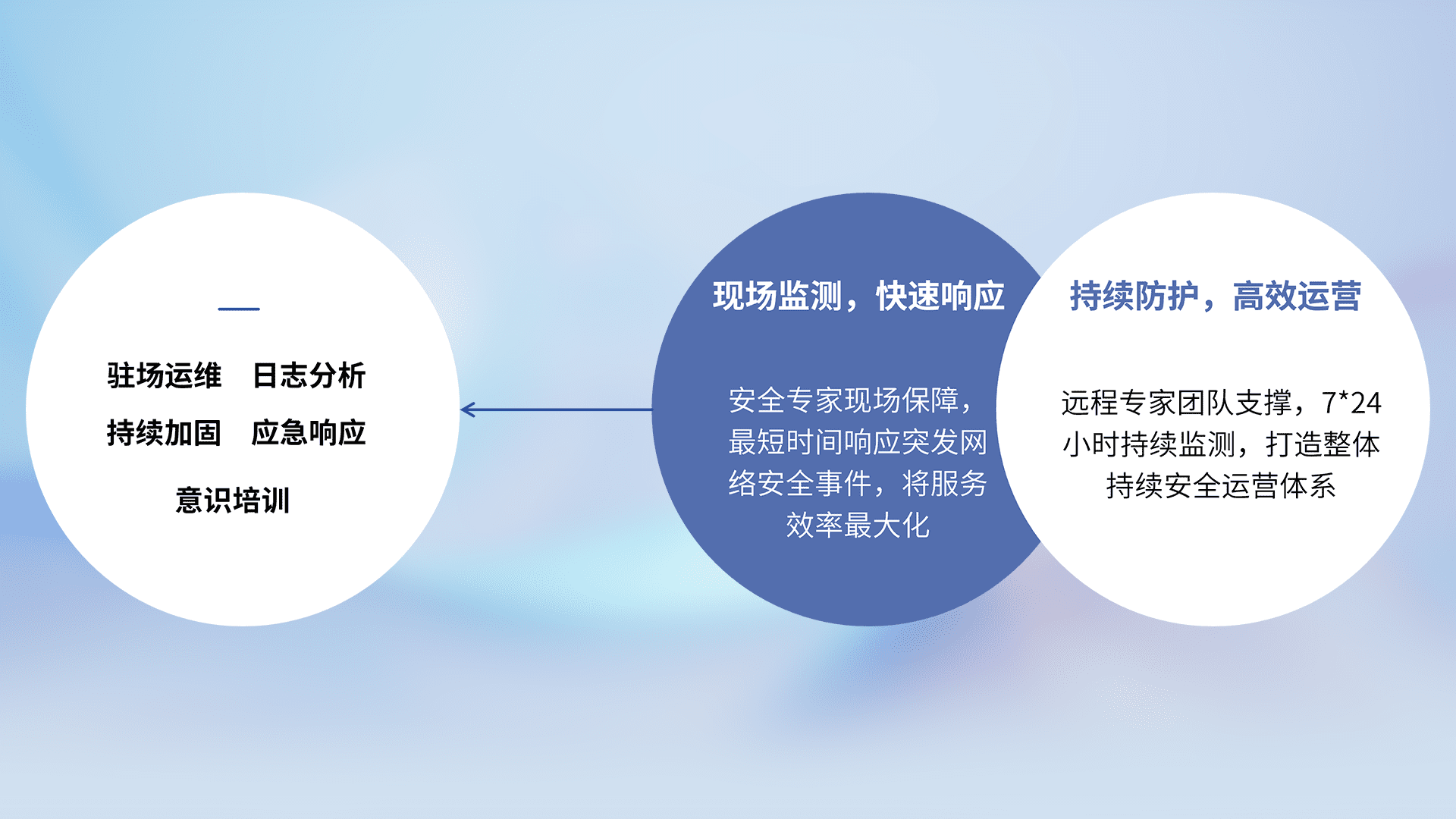 7X24小时持续监测安全事件,保持安全策略有效性,降低资产脆弱性风险,,,,精准拦截黑客攻击,,减少被黑客利用的机会,,,,第一时间遏制,,降低损失。。。。